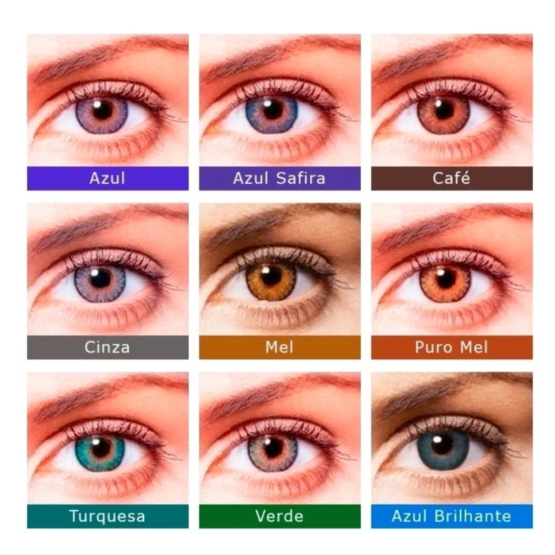 As cores das lentes que estão disponíveis são: